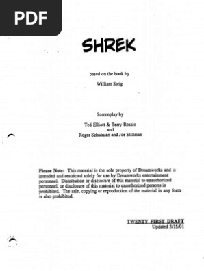 - This is it. Shrek 1 movie script pdf. Donkey and Shrek are walking on the spot whilst the scenery is.